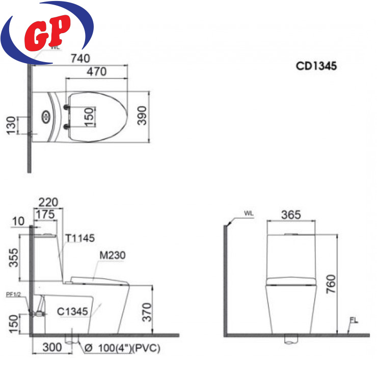 Bồn Cầu INAX AC-909VRN (AC909VRN) 1 Khối Aqua Ceramic