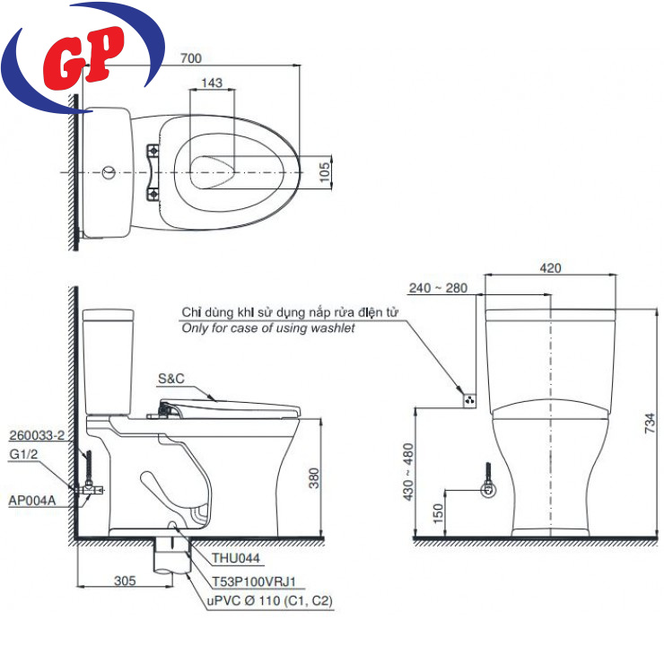 Bồn Cầu American Standard VF-2011PL Nắp Rửa Điện Tử