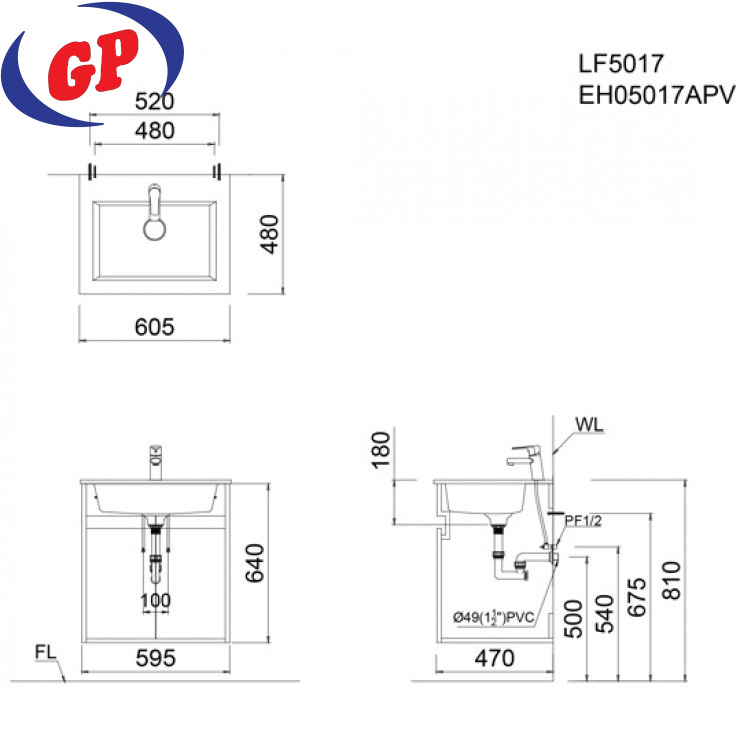 Bộ tủ chậu rửa mặt kèm bàn đá Caesar LF5017+ EH05017AV có thể lắp đặt phù hợp với các vòi sau: B305C , B400CP , B460C , B430CP , B490CP , B680CT , ...