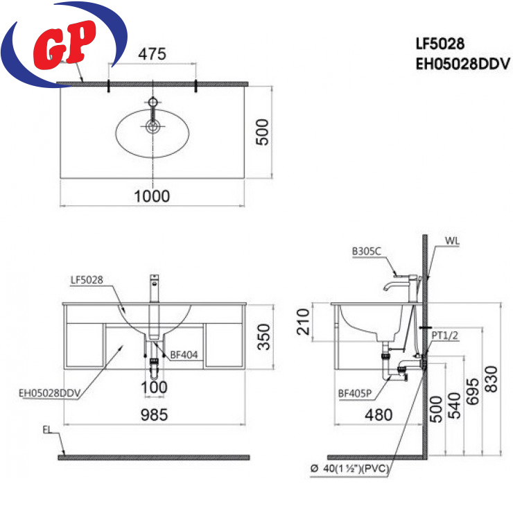 Bộ Chậu Rửa Lavabo Và Chân Ngắn Treo Tường Viglacera V50 (CD50)