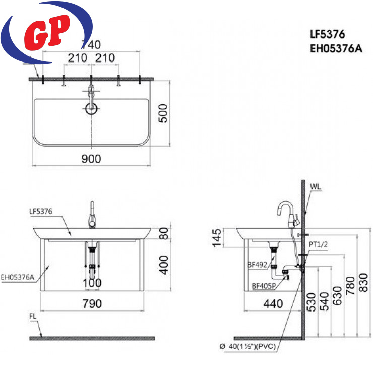 Bộ tủ chậu rửa mặt kèm bàn đá Caesar LF5376+ EH05376A có thể lắp đặt phù hợp với các vòi sau: B305C , B400CP , B460C , B430CP , B490CP , B680CT , ...