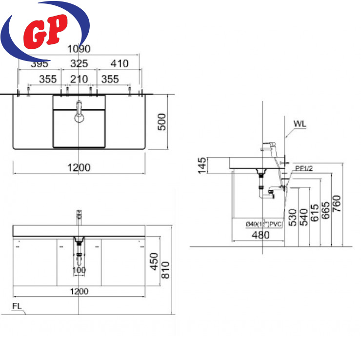 Bộ tủ chậu rửa mặt kèm bàn đá Caesar LF53868 EH05388A có thể lắp đặt phù hợp với các vòi sau: B305C , B400CP , B460C , B430CP , B490CP , B680CT , ...