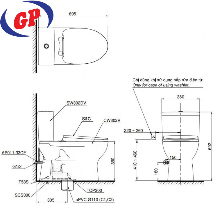 Bồn Cầu Điện Tử TOTO CS320DRW16 Nắp Rửa Washlet TCF23410AAA C2