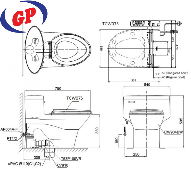 Thân Bồn Cầu TOTO CW822RA/TCF24410AAA Nắp Điện Tử Treo Tường