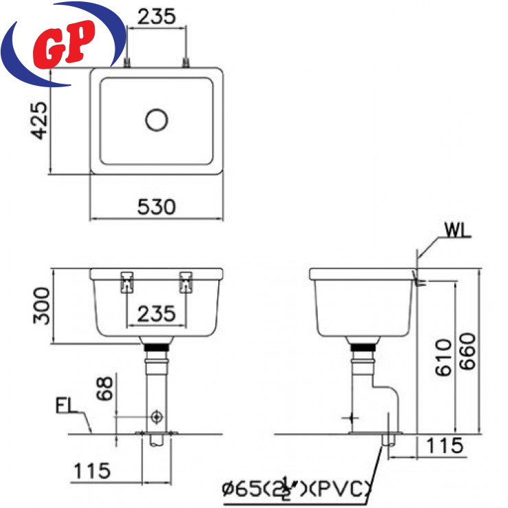 Lavabo Treo Tường Inax L-285V/L-288VC Kèm Chân Ngắn