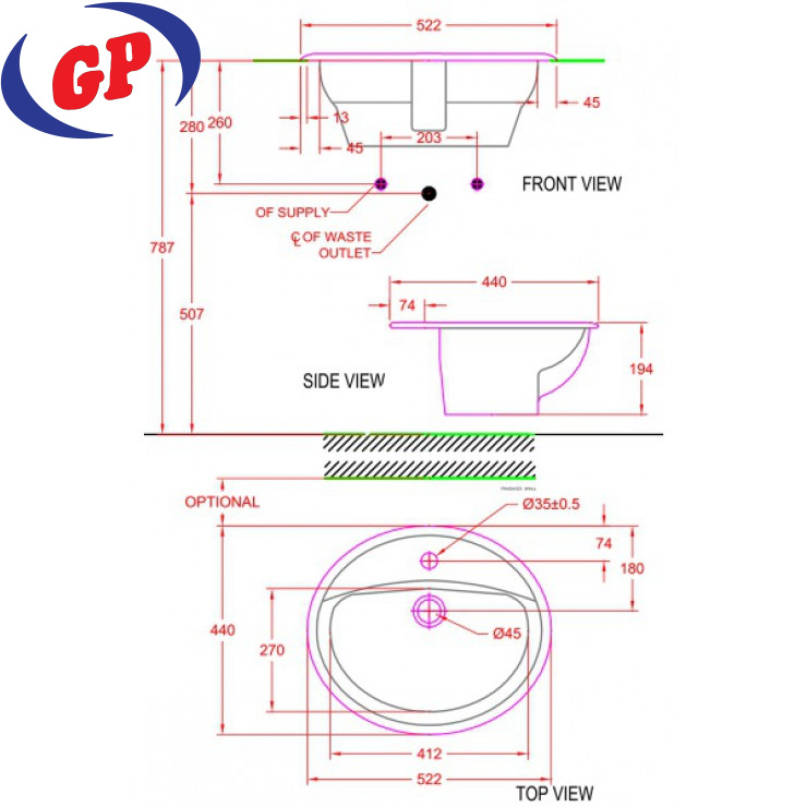 Chậu Rửa Mặt American Standard VF-0620 (WP-F520) Đặt Bàn