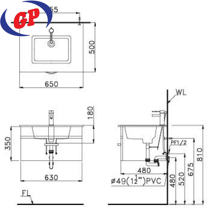 Lavabo Treo Tường Inax L-282V/L-284VD Kèm Chân Dài