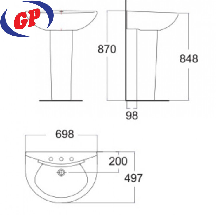 - Trong đó: 0956-WT: chậu lavabo treo tường, 0775-WT: chân dài lavabo