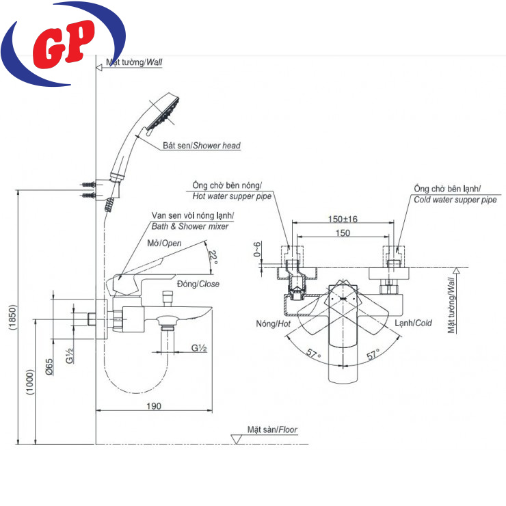 Vòi Sen Tắm TOTO TBG03302VA/TBW01008A (TBG03302VA) Nóng Lạnh