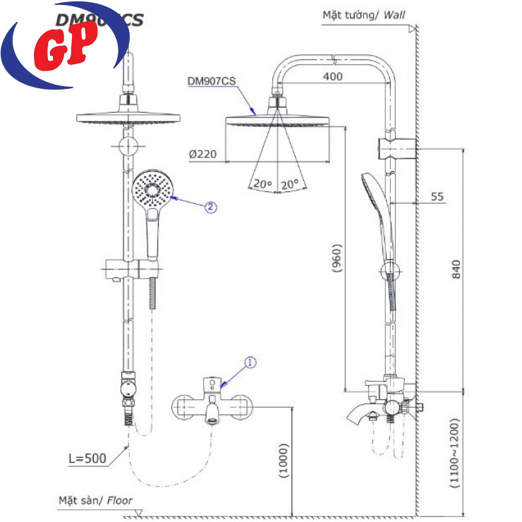 Bộ Cây Sen Phun Mưa American Standard WF-0572/D20S