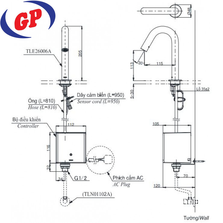 Vòi Cảm Ứng Lavabo TOTO TTLA102/TTLE101E2L/HAP004A