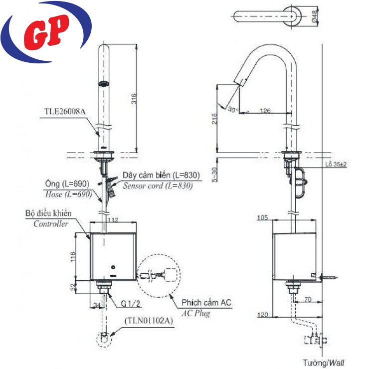 Bộ Điều Khiển Vòi Cảm Ứng TOTO TLE03502A1/TLN01102A Tự Tạo Năng Lượng Lạnh