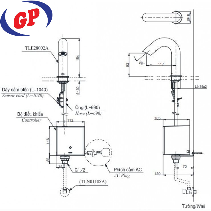Vòi Lavabo Cảm Ứng TOTO TLE21006A/TLE04502A1/TLN01102A PIN 2L