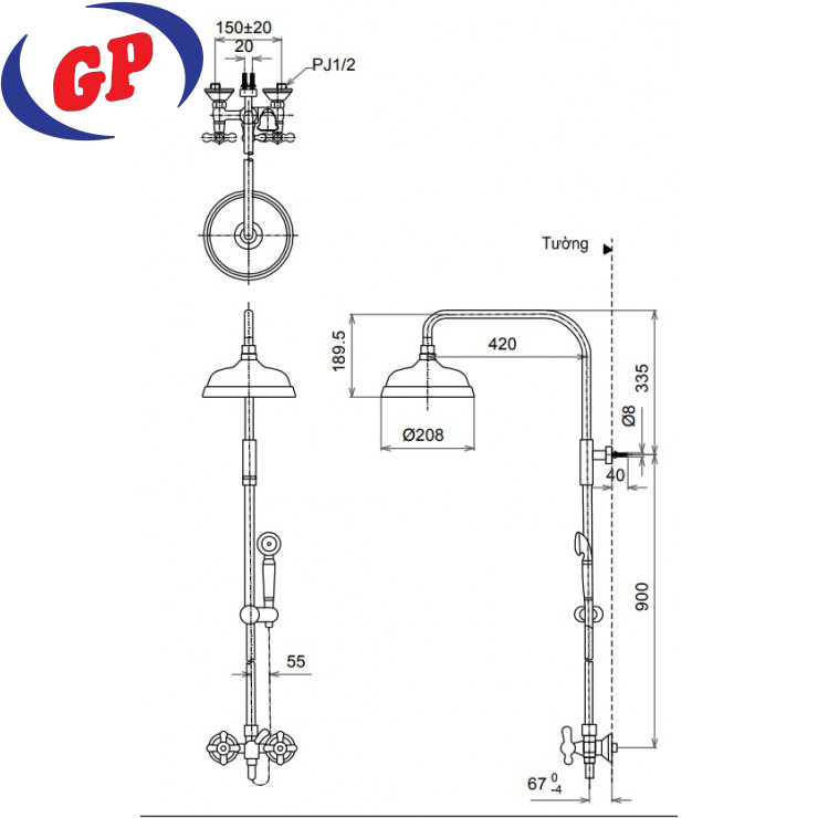 Vòi Sen Cây TOTO TBW01402BB (TBW01402B) Nhiệt Độ