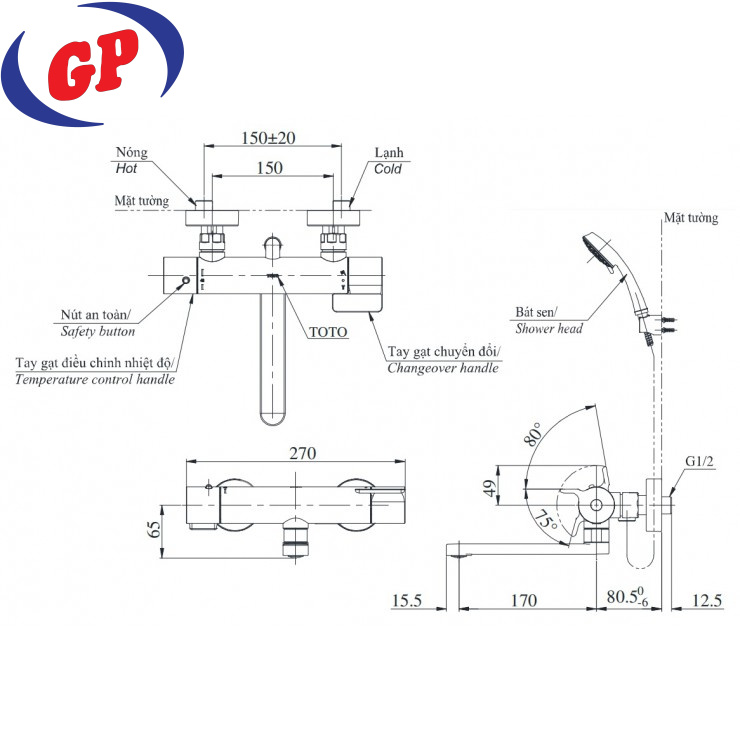 Vòi Sen TOTO TBG04302VA/TBW07009A Tay Sen 3 Chế Độ